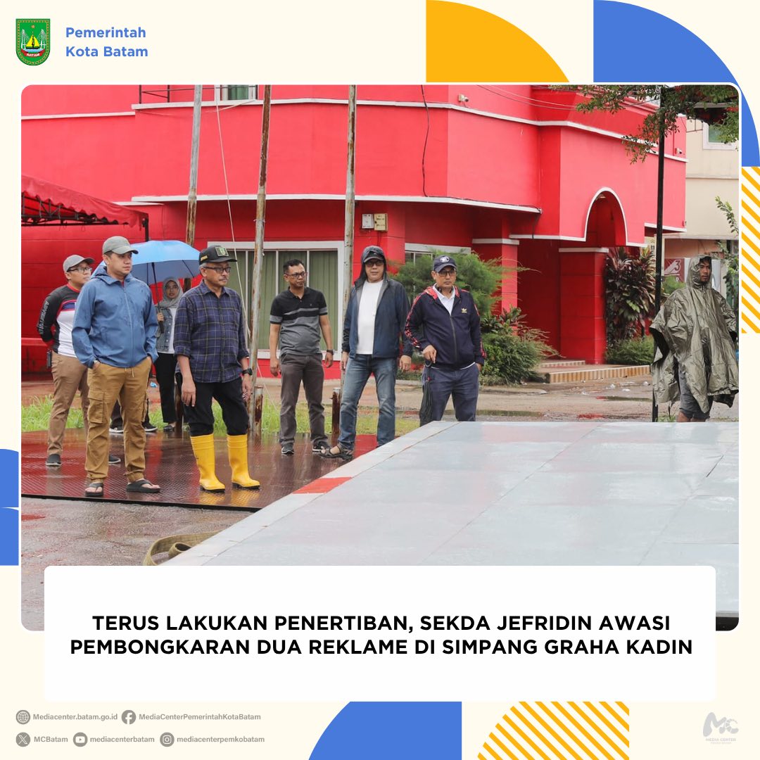 Batam / Berita / Sekda 29 Mei 2025 oleh mediacenter · Published 29 Mei 2025 𝐓𝐞𝐫𝐮𝐬 𝐋𝐚𝐤𝐮𝐤𝐚𝐧 𝐏𝐞𝐧𝐞𝐫𝐭𝐢𝐛𝐚𝐧, 𝐒𝐞𝐤𝐝𝐚 𝐉𝐞𝐟𝐫𝐢𝐝𝐢𝐧 𝐀𝐰𝐚𝐬𝐢 𝐏𝐞𝐦𝐛𝐨𝐧𝐠𝐤𝐚𝐫𝐚𝐧 𝐃𝐮𝐚 𝐑𝐞𝐤𝐥𝐚𝐦𝐞 𝐝𝐢 𝐒𝐢𝐦𝐩𝐚𝐧𝐠 𝐆𝐫𝐚𝐡𝐚 𝐊𝐚𝐝𝐢𝐧 𝐃𝐢𝐬𝐤𝐨𝐦𝐢𝐧𝐟𝐨 𝐁𝐚𝐭𝐚𝐦- Sekretaris Daerah Kota Batam, Jefridin, M.Pd. turun langsung mengawasi pembongkaran dua unit reklame, di Simpang Graha...