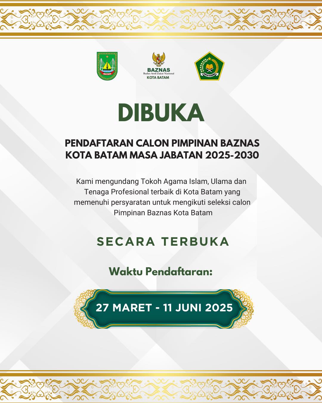 𝐃𝐢𝐬𝐤𝐨𝐦𝐢𝐧𝐟𝐨 𝐁𝐚𝐭𝐚𝐦-Ketua Panitia Seleksi Calon Pimpinan BAZNAS Kota Batam sekaligus Asisten Perekonomian dan Pembangunan, Firmansyah secara resmi mengumumkan...