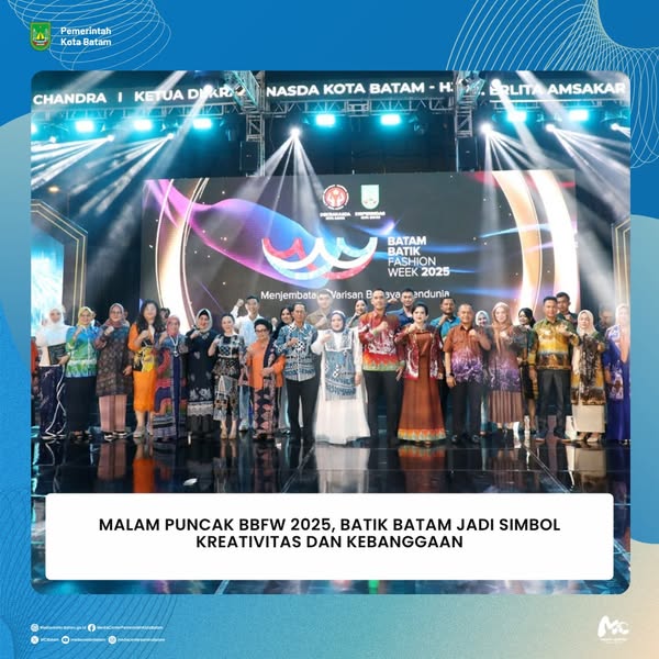 Batam / Berita / Walikota 6 Oktober 2025 oleh mediacenter · Published 6 Oktober 2025 Malam Puncak BBFW 2025, Batik Batam Jadi Simbol Kreativitas dan Kebanggaan Diskominfo Batam – Dataran Engku Putri berubah menjadi panggung megah kreativitas, Sabtu (4/10/2025) malam. Ratusan pasang mata terpukau...