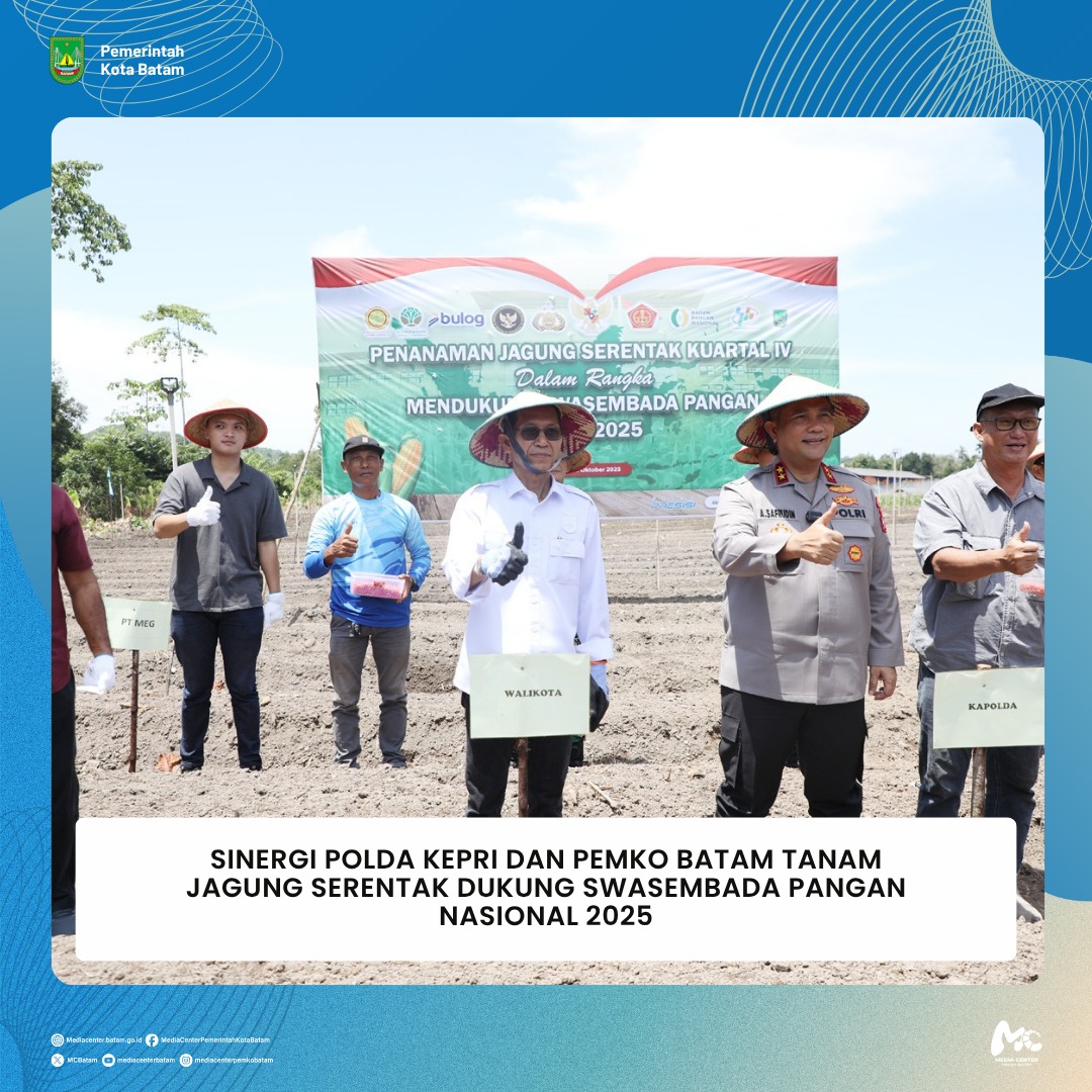 Batam / Berita / Walikota 9 Oktober 2025 oleh mediacenter · Published 9 Oktober 2025 Sinergi Polda Kepri dan Pemko Batam Tanam Jagung Serentak Dukung Swasembada Pangan Nasional 2025 Diskominfo Batam – Dalam upaya memperkuat ketahanan pangan nasional, Wali Kota Batam, Amsakar Achmad, menghadiri kegiatan Penanaman Jagung...