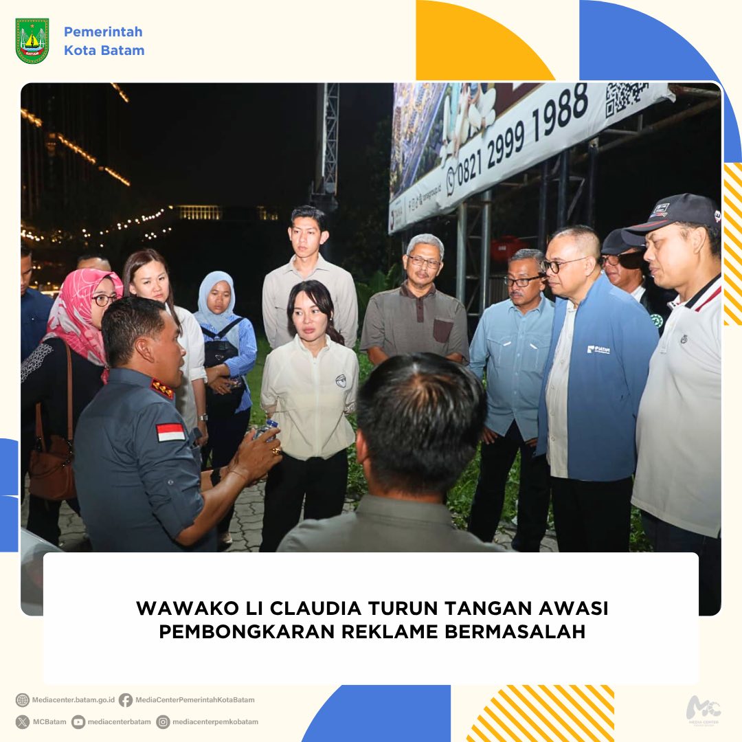 Batam / Berita / Wakil Walikota 28 Mei 2025 oleh mediacenter · Published 28 Mei 2025 𝐖𝐚𝐰𝐚𝐤𝐨 𝐋𝐢 𝐂𝐥𝐚𝐮𝐝𝐢𝐚 𝐓𝐮𝐫𝐮𝐧 𝐓𝐚𝐧𝐠𝐚𝐧 𝐀𝐰𝐚𝐬𝐢 𝐏𝐞𝐦𝐛𝐨𝐧𝐠𝐤𝐚𝐫𝐚𝐧 𝐑𝐞𝐤𝐥𝐚𝐦𝐞 𝐁𝐞𝐫𝐦𝐚𝐬𝐚𝐥𝐚𝐡 𝐃𝐢𝐬𝐤𝐨𝐦𝐢𝐧𝐟𝐨 𝐁𝐚𝐭𝐚𝐦-Pemerintah Kota Batam terus menggencarkan penertiban terhadap reklame yang tidak memiliki izin dan menunggak pajak. Wakil Wali...