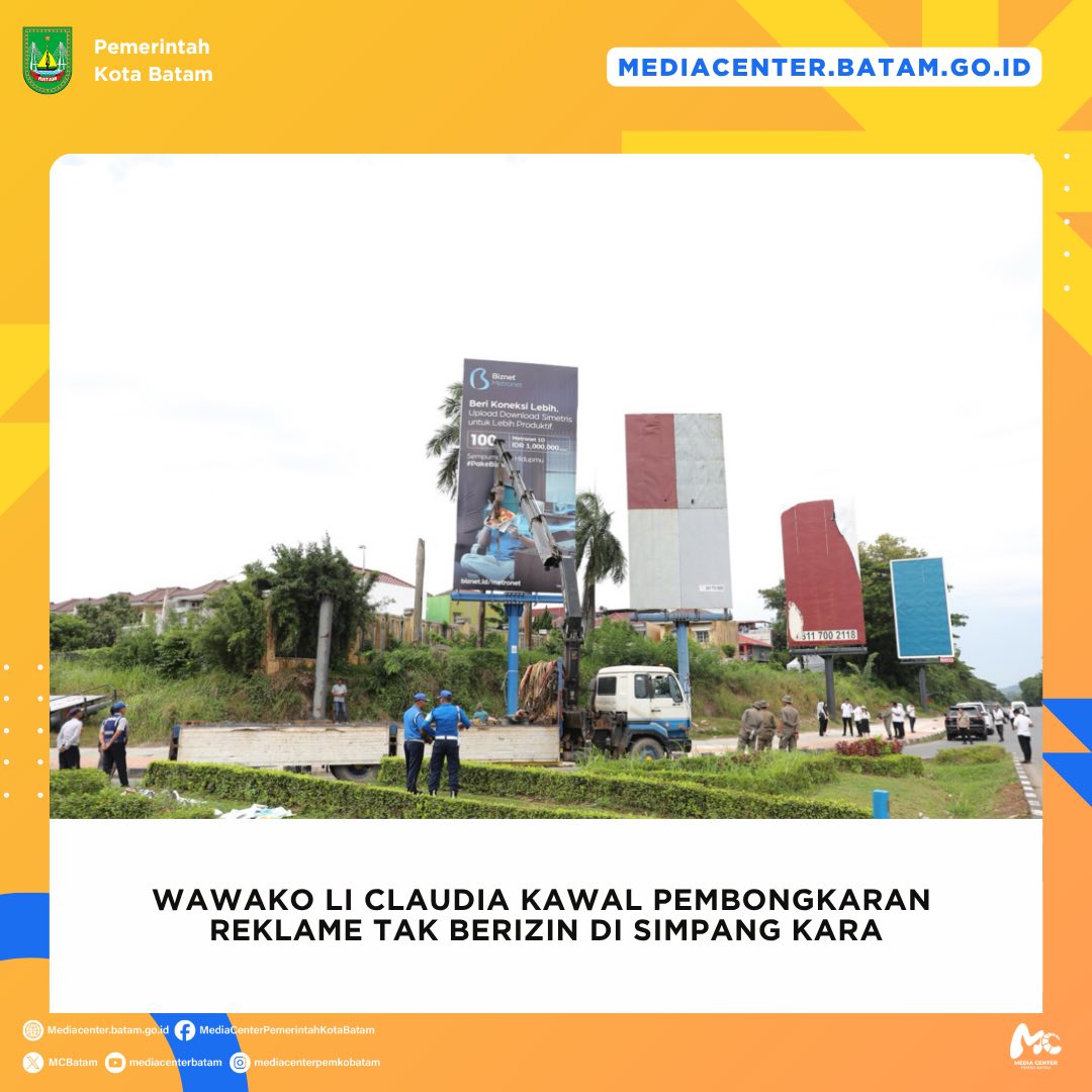 Batam / Berita / Wakil Walikota 18 Juni 2025 oleh mediacenter · Published 18 Juni 2025 𝐖𝐚𝐰𝐚𝐤𝐨 𝐋𝐢 𝐂𝐥𝐚𝐮𝐝𝐢𝐚 𝐊𝐚𝐰𝐚𝐥 𝐏𝐞𝐦𝐛𝐨𝐧𝐠𝐤𝐚𝐫𝐚𝐧 𝐑𝐞𝐤𝐥𝐚𝐦𝐞 𝐓𝐚𝐤 𝐁𝐞𝐫𝐢𝐳𝐢𝐧 𝐝𝐢 𝐒𝐢𝐦𝐩𝐚𝐧𝐠 𝐊𝐚𝐫𝐚 𝐃𝐢𝐬𝐤𝐨𝐦𝐢𝐧𝐟𝐨 𝐁𝐚𝐭𝐚𝐦-Pemerintah Kota Batam kembali menertibkan unit reklame bermasalah, kali ini di Jalan Ahmad Yani, tepatnya di Simpang...