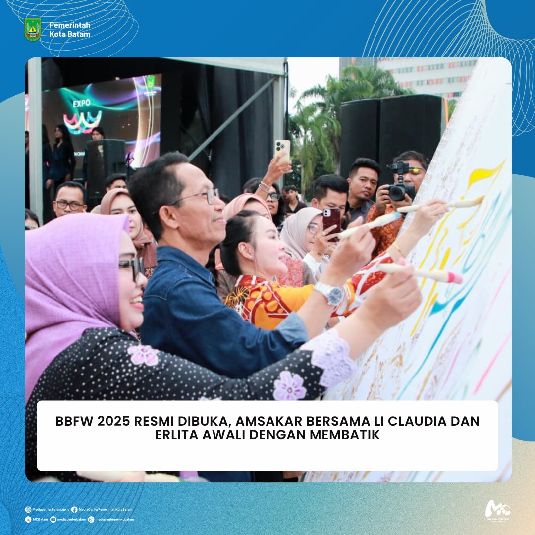 Batam / Berita / Walikota 4 Oktober 2025 oleh mediacenter · Published 4 Oktober 2025 BBFW 2025 Resmi Dibuka, Amsakar Bersama Li Claudia dan Erlita Awali dengan Membatik Diskominfo Baram – Pembukaan Expo Batam Batik Fashion Week (BBFW) 2025 berlangsung meriah di Dataran Engku Putri, Kamis...