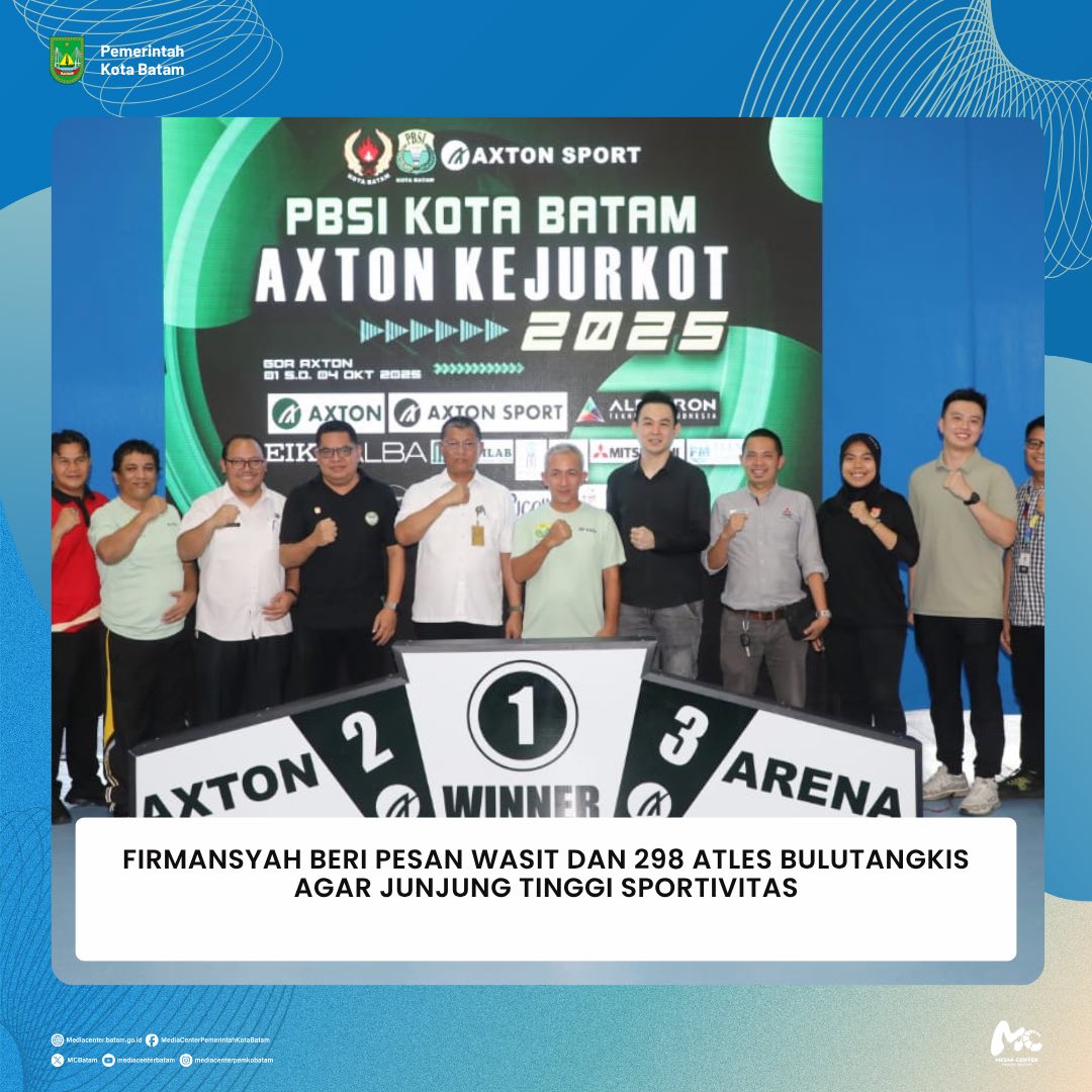 Berita / olahraga / PJ SEKDA 2 Oktober 2025 oleh mediacenter · Published 2 Oktober 2025 Firmansyah Beri Pesan Wasit dan 298 Atles Bulutangkis Agar Junjung Tinggi Sportivitas Diskominfo Batam– Wali Kota Batam Amsakar Achmad, diwakili Penjabat (Pj) Sekretaris Daerah (Sekda) Kota Batam Firmansyah membuka Kejuaraan...