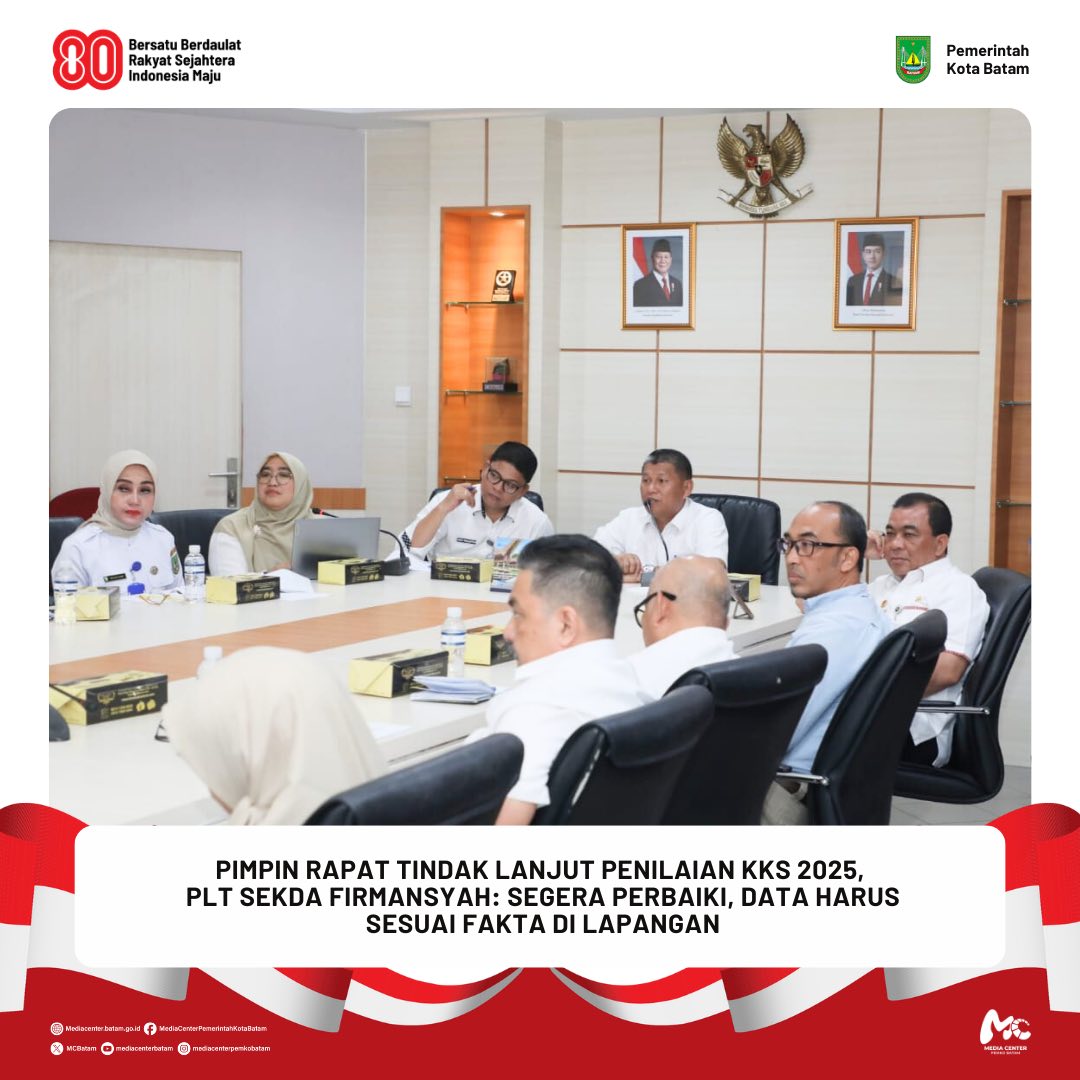 Batam / Berita / PLT SEKDA 28 Agustus 2025 oleh mediacenter · Published 28 Agustus 2025 𝐏𝐢𝐦𝐩𝐢𝐧 𝐑𝐚𝐩𝐚𝐭 𝐓𝐢𝐧𝐝𝐚𝐤 𝐋𝐚𝐧𝐣𝐮𝐭 𝐏𝐞𝐧𝐢𝐥𝐚𝐢𝐚𝐧 𝐊𝐊𝐒 𝟐𝟎𝟐𝟓, 𝐏𝐥𝐭 𝐒𝐞𝐤𝐝𝐚 𝐅𝐢𝐫𝐦𝐚𝐧𝐬𝐲𝐚𝐡: 𝐒𝐞𝐠𝐞𝐫𝐚 𝐏𝐞𝐫𝐛𝐚𝐢𝐤𝐢, 𝐃𝐚𝐭𝐚 𝐇𝐚𝐫𝐮𝐬 𝐒𝐞𝐬𝐮𝐚𝐢 𝐅𝐚𝐤𝐭𝐚 𝐃𝐢 𝐋𝐚𝐩𝐚𝐧𝐠𝐚𝐧 𝐃𝐢𝐬𝐤𝐨𝐦𝐢𝐧𝐟𝐨 𝐁𝐚𝐭𝐚𝐦- Plt Sekretaris Daerah Kota (Setdako) Batam, Firmansyah memimpin Rapat Pelaksanaan Persiapan Tindak Lanjut Penilaian Kabupaten/Kota Sehat...