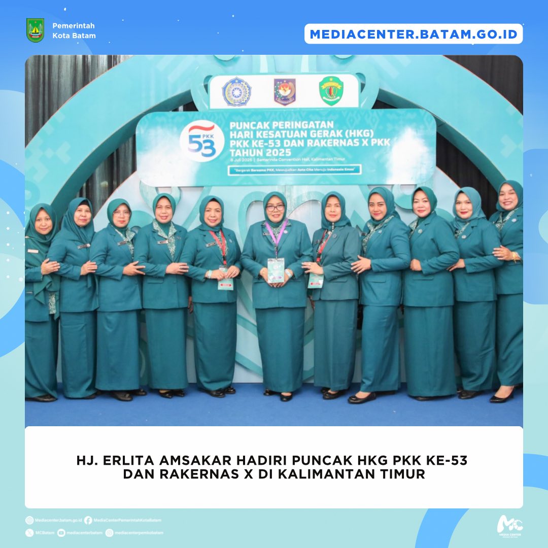 Batam / Berita / TP PKK 10 Juli 2025 oleh mediacenter · Published 10 Juli 2025 𝐇𝐣. 𝐄𝐫𝐥𝐢𝐭𝐚 𝐀𝐦𝐬𝐚𝐤𝐚𝐫 𝐇𝐚𝐝𝐢𝐫𝐢 𝐏𝐮𝐧𝐜𝐚𝐤 𝐇𝐊𝐆 𝐏𝐊𝐊 𝐤𝐞-𝟓𝟑 𝐝𝐚𝐧 𝐑𝐚𝐤𝐞𝐫𝐧𝐚𝐬 𝐗 𝐝𝐢 𝐊𝐚𝐥𝐢𝐦𝐚𝐧𝐭𝐚𝐧 𝐓𝐢𝐦𝐮𝐫 𝐃𝐢𝐬𝐤𝐨𝐦𝐢𝐧𝐟𝐨 𝐁𝐚𝐭𝐚𝐦– Ketua Tim Penggerak Pemberdayaan dan Kesejahteraan Keluarga (TP-PKK) Kota Batam, Hj. Erlita Amsakar, menghadiri puncak peringatan...