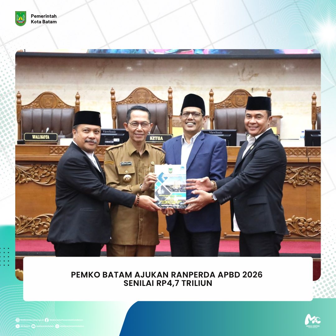 Berita / Ranperda / Walikota 9 September 2025 oleh mediacenter · Published 9 September 2025 𝐏𝐞𝐦𝐤𝐨 𝐁𝐚𝐭𝐚𝐦 𝐀𝐣𝐮𝐤𝐚𝐧 𝐑𝐚𝐧𝐩𝐞𝐫𝐝𝐚 𝐀𝐏𝐁𝐃 𝟐𝟎𝟐𝟔 𝐒𝐞𝐧𝐢𝐥𝐚𝐢 𝐑𝐩𝟒,𝟕 𝐓𝐫𝐢𝐥𝐢𝐮𝐧 𝐃𝐢𝐬𝐤𝐨𝐦𝐢𝐧𝐟𝐨 𝐁𝐚𝐭𝐚𝐦 – Pemerintah Kota Batam resmi menyampaikan Rancangan Peraturan Daerah (Ranperda) tentang Anggaran Pendapatan dan Belanja Daerah...