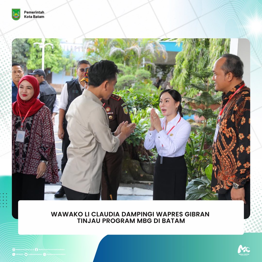 Batam / Berita / Wakil Walikota 10 September 2025 oleh mediacenter · Published 10 September 2025 𝐖𝐚𝐰𝐚𝐤𝐨 𝐋𝐢 𝐂𝐥𝐚𝐮𝐝𝐢𝐚 𝐃𝐚𝐦𝐩𝐢𝐧𝐠𝐢 𝐖𝐚𝐩𝐫𝐞𝐬 𝐆𝐢𝐛𝐫𝐚𝐧 𝐓𝐢𝐧𝐣𝐚𝐮 𝐏𝐫𝐨𝐠𝐫𝐚𝐦 𝐌𝐁𝐆 𝐝𝐢 𝐁𝐚𝐭𝐚𝐦 𝐃𝐢𝐬𝐤𝐨𝐦𝐢𝐧𝐟𝐨 𝐁𝐚𝐭𝐚𝐦-Wakil Wali Kota Batam, Li Claudia Chandra, menyambut kedatangan Wakil Presiden Republik Indonesia, Gibran Rakabuming Raka, di...