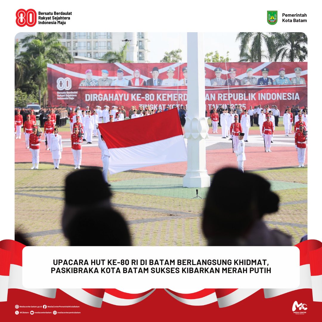 Berita / HUT RI KE - 80 / Walikota 17 Agustus 2025 oleh mediacenter · Published 17 Agustus 2025 𝐔𝐩𝐚𝐜𝐚𝐫𝐚 𝐇𝐔𝐓 𝐤𝐞-𝟖𝟎 𝐑𝐈 𝐝𝐢 𝐁𝐚𝐭𝐚𝐦 𝐁𝐞𝐫𝐥𝐚𝐧𝐠𝐬𝐮𝐧𝐠 𝐊𝐡𝐢𝐝𝐦𝐚𝐭,𝐏𝐚𝐬𝐤𝐢𝐛𝐫𝐚𝐤𝐚 𝐊𝐨𝐭𝐚 𝐁𝐚𝐭𝐚𝐦 𝐒𝐮𝐤𝐬𝐞𝐬 𝐊𝐢𝐛𝐚𝐫𝐤𝐚𝐧 𝐌𝐞𝐫𝐚𝐡 𝐏𝐮𝐭𝐢𝐡 𝐃𝐢𝐬𝐤𝐨𝐦𝐢𝐧𝐟𝐨 𝐁𝐚𝐭𝐚𝐦 – Wali Kota Batam, Amsakar Achmad, bertindak sebagai inspektur upacara pada peringatan Hari Ulang Tahun (HUT)...