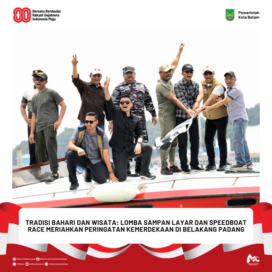 Batam / Berita / Walikota 16 Agustus 2025 oleh mediacenter · Published 16 Agustus 2025 𝐓𝐫𝐚𝐝𝐢𝐬𝐢 𝐁𝐚𝐡𝐚𝐫𝐢 𝐝𝐚𝐧 𝐖𝐢𝐬𝐚𝐭𝐚: 𝐋𝐨𝐦𝐛𝐚 𝐒𝐚𝐦𝐩𝐚𝐧 𝐋𝐚𝐲𝐚𝐫 𝐝𝐚𝐧 𝐒𝐩𝐞𝐞𝐝𝐛𝐨𝐚𝐭 𝐑𝐚𝐜𝐞 𝐌𝐞𝐫𝐢𝐚𝐡𝐤𝐚𝐧 𝐏𝐞𝐫𝐢𝐧𝐠𝐚𝐭𝐚𝐧 𝐊𝐞𝐦𝐞𝐫𝐝𝐞𝐤𝐚𝐚𝐧 𝐝𝐢 𝐁𝐞𝐥𝐚𝐤𝐚𝐧𝐠 𝐏𝐚𝐝𝐚𝐧𝐠 𝐃𝐢𝐬𝐤𝐨𝐦𝐢𝐧𝐟𝐨 𝐁𝐚𝐭𝐚𝐦 – Wali Kota Batam, Amsakar Achmad, menghadiri sekaligus melepas peserta Lomba Sampan Layar Ketinting dan Speedboat...