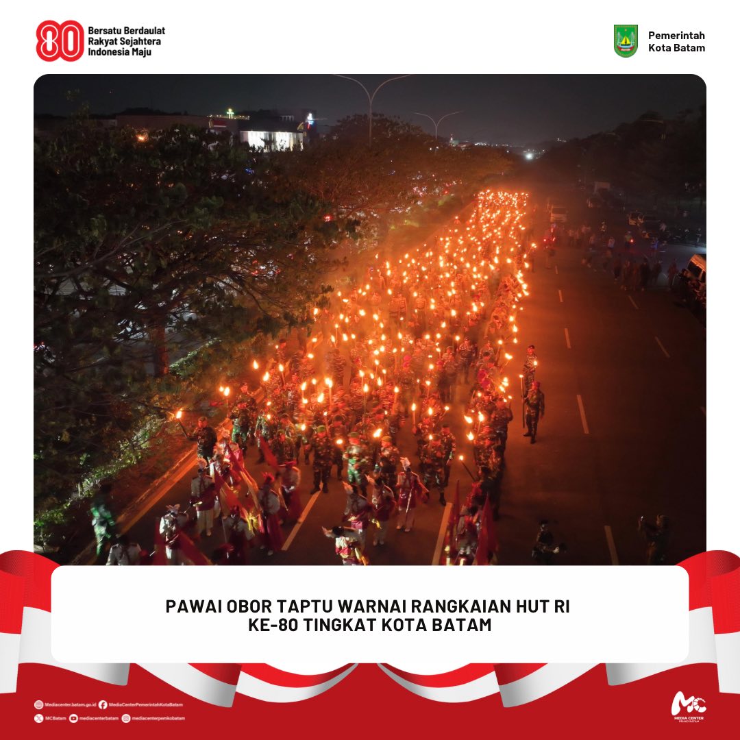 Berita / PAWAI OBOR / PEMKO BATAM 17 Agustus 2025 oleh mediacenter · Published 17 Agustus 2025 𝐏𝐚𝐰𝐚𝐢 𝐎𝐛𝐨𝐫 𝐓𝐚𝐩𝐭𝐮 𝐖𝐚𝐫𝐧𝐚𝐢 𝐑𝐚𝐧𝐠𝐤𝐚𝐢𝐚𝐧 𝐇𝐔𝐓 𝐑𝐈 𝐤𝐞-𝟖𝟎 𝐓𝐢𝐧𝐠𝐤𝐚𝐭 𝐊𝐨𝐭𝐚 𝐁𝐚𝐭𝐚𝐦 𝐃𝐢𝐬𝐤𝐨𝐦𝐢𝐧𝐟𝐨 𝐁𝐚𝐭𝐚𝐦 – Suasana khidmat menyelimuti Dataran Engku Hamidah, Batam Centre, Sabtu (16/8/2025). Ribuan masyarakat menyaksikan langsung Pawai...