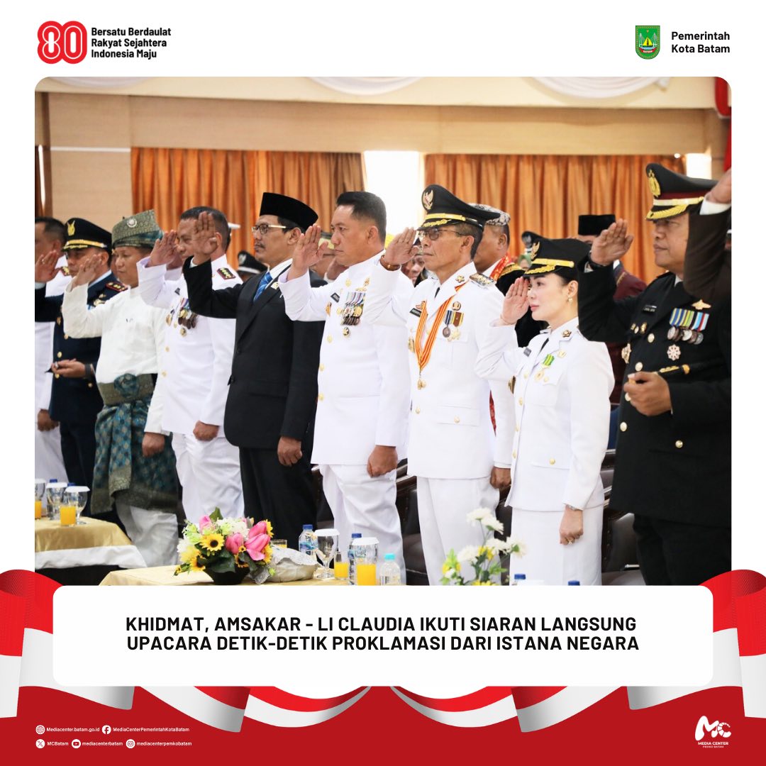 Batam / Berita / Walikota 17 Agustus 2025 oleh mediacenter · Published 17 Agustus 2025 𝐊𝐡𝐢𝐝𝐦𝐚𝐭, 𝐀𝐦𝐬𝐚𝐤𝐚𝐫 – 𝐋𝐢 𝐂𝐥𝐚𝐮𝐝𝐢𝐚 𝐈𝐤𝐮𝐭𝐢 𝐒𝐢𝐚𝐫𝐚𝐧 𝐋𝐚𝐧𝐠𝐬𝐮𝐧𝐠 𝐔𝐩𝐚𝐜𝐚𝐫𝐚 𝐃𝐞𝐭𝐢𝐤-𝐝𝐞𝐭𝐢𝐤 𝐏𝐫𝐨𝐤𝐥𝐚𝐦𝐚𝐬𝐢 𝐝𝐚𝐫𝐢 𝐈𝐬𝐭𝐚𝐧𝐚 𝐍𝐞𝐠𝐚𝐫𝐚 𝐃𝐢𝐬𝐤𝐨𝐦𝐢𝐧𝐟𝐨 𝐁𝐚𝐭𝐚𝐦 – Wali Kota Batam, Amsakar Achmad, bersama Wakil Wali Kota, Li Claudia Chandra menyaksikan secara langsung...