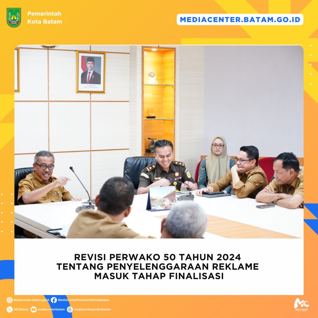 Batam / Berita / Sekda 24 Juni 2025 oleh mediacenter · Published 24 Juni 2025 𝐑𝐞𝐯𝐢𝐬𝐢 𝐏𝐞𝐫𝐰𝐚𝐤𝐨 𝟓𝟎 𝐓𝐚𝐡𝐮𝐧 𝟐𝟎𝟐𝟒 𝐭𝐞𝐧𝐭𝐚𝐧𝐠 𝐏𝐞𝐧𝐲𝐞𝐥𝐞𝐧𝐠𝐠𝐚𝐫𝐚𝐚𝐧 𝐑𝐞𝐤𝐥𝐚𝐦𝐞 𝐌𝐚𝐬𝐮𝐤 𝐓𝐚𝐡𝐚𝐩 𝐅𝐢𝐧𝐚𝐥𝐢𝐬𝐚𝐬𝐢 𝐃𝐢𝐬𝐤𝐨𝐦𝐢𝐧𝐟𝐨 𝐁𝐚𝐭𝐚𝐦- Pemerintah Kota Batam melalui Badan Pendapatan Daerah (Bapenda) menggelar rapat pembahasan Finalisasi Perubahan Perwako Nomor 50...